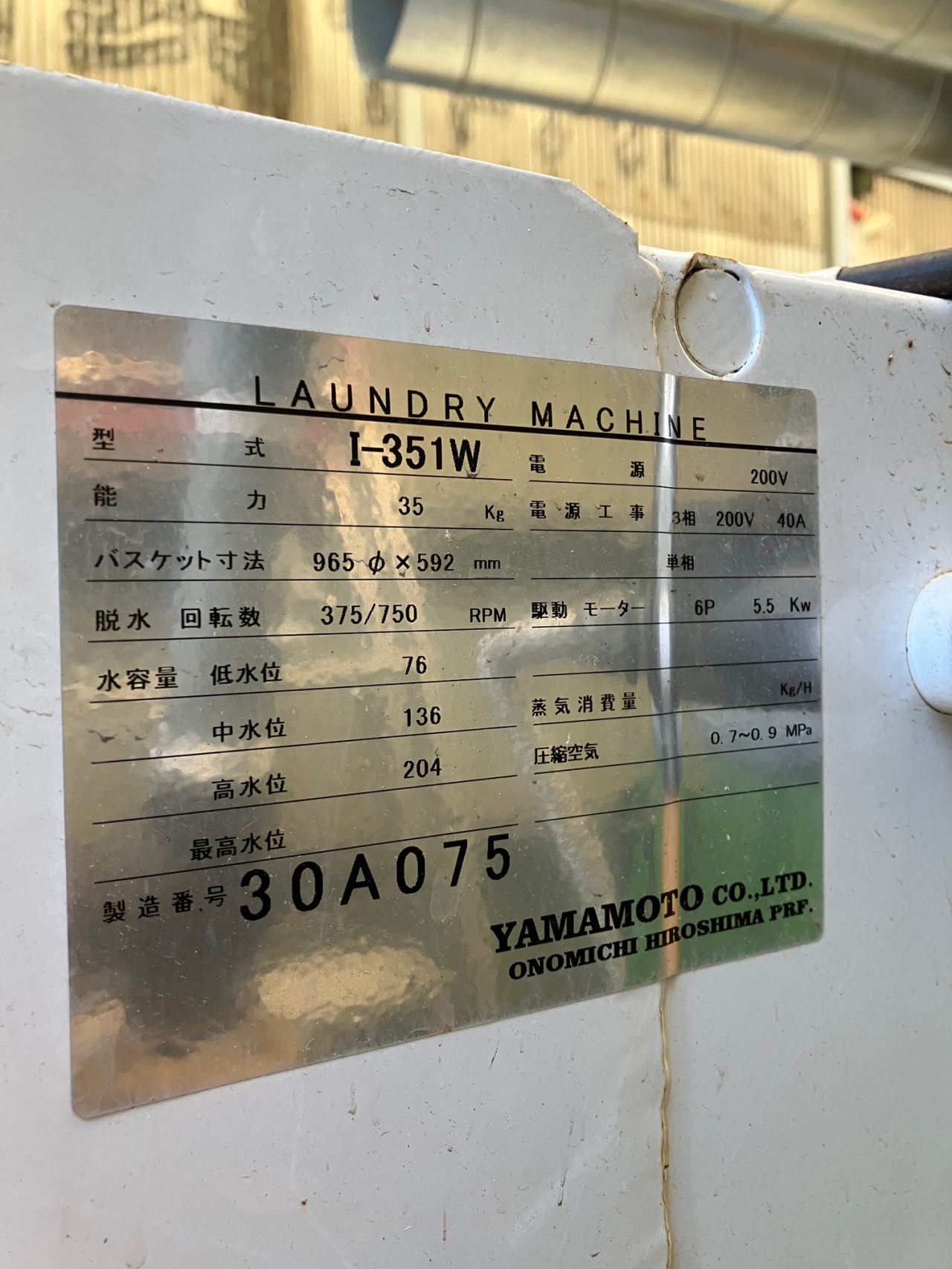 | 機種 | 山本製作所 水洗機(35kg) |