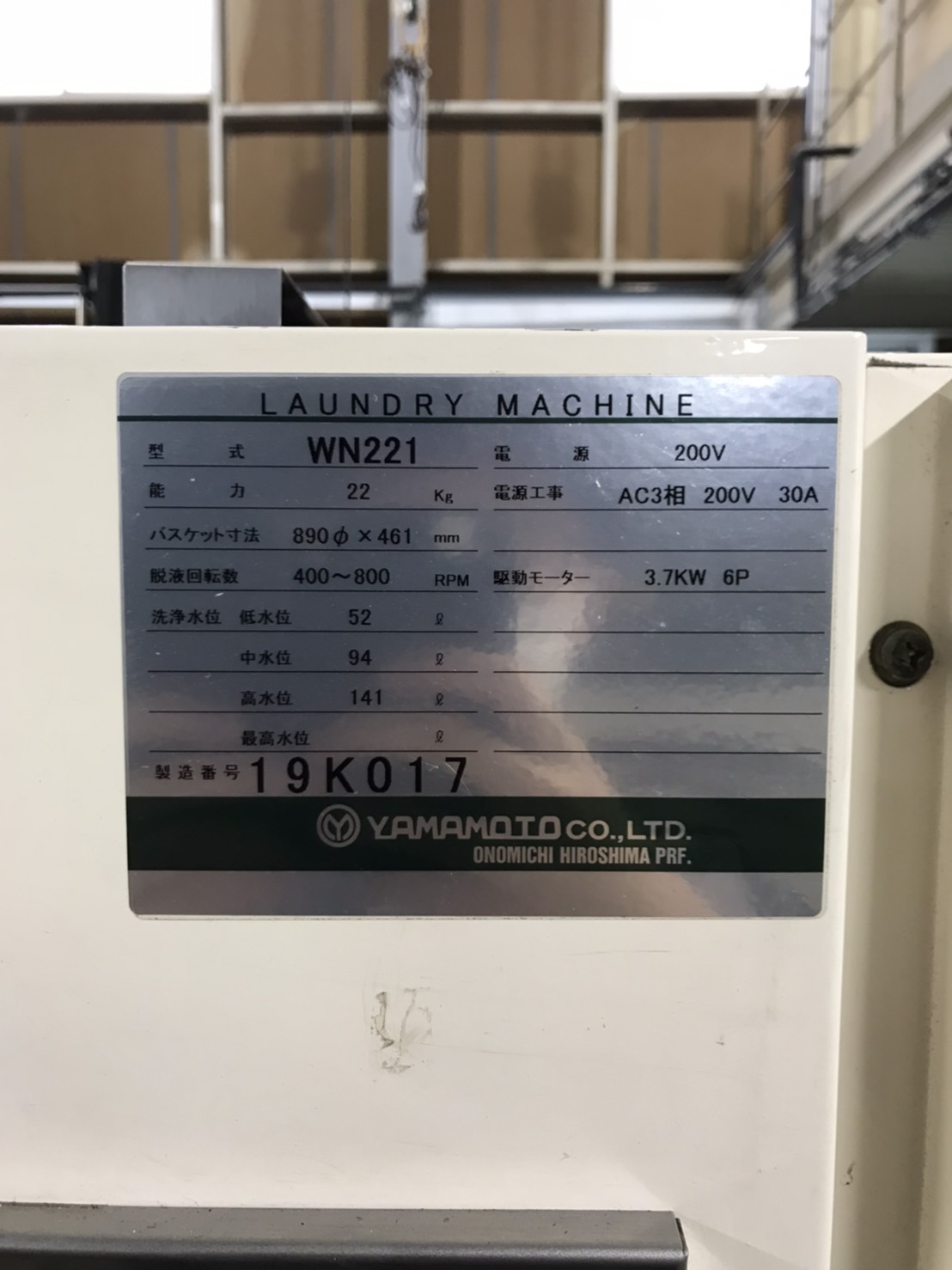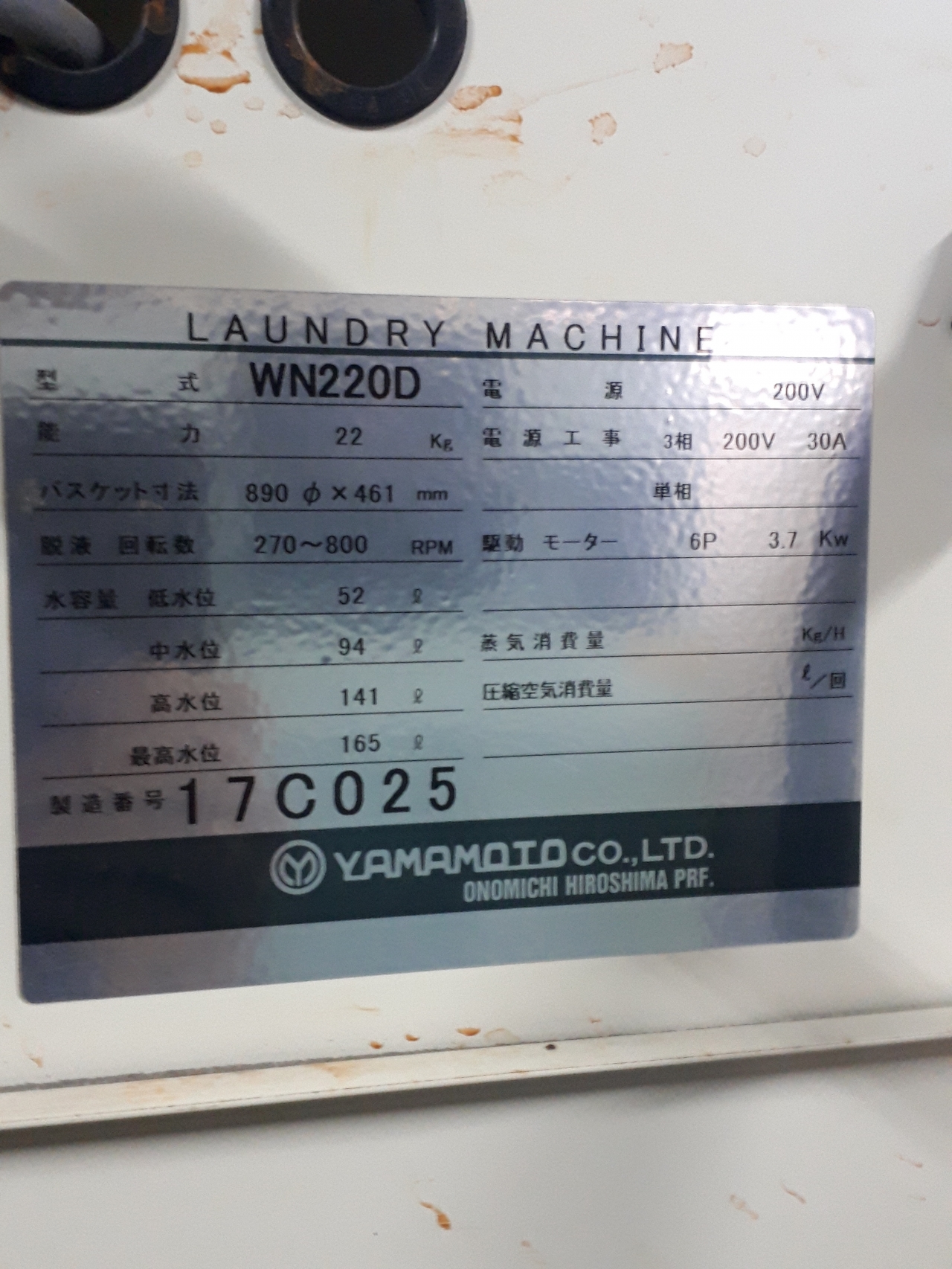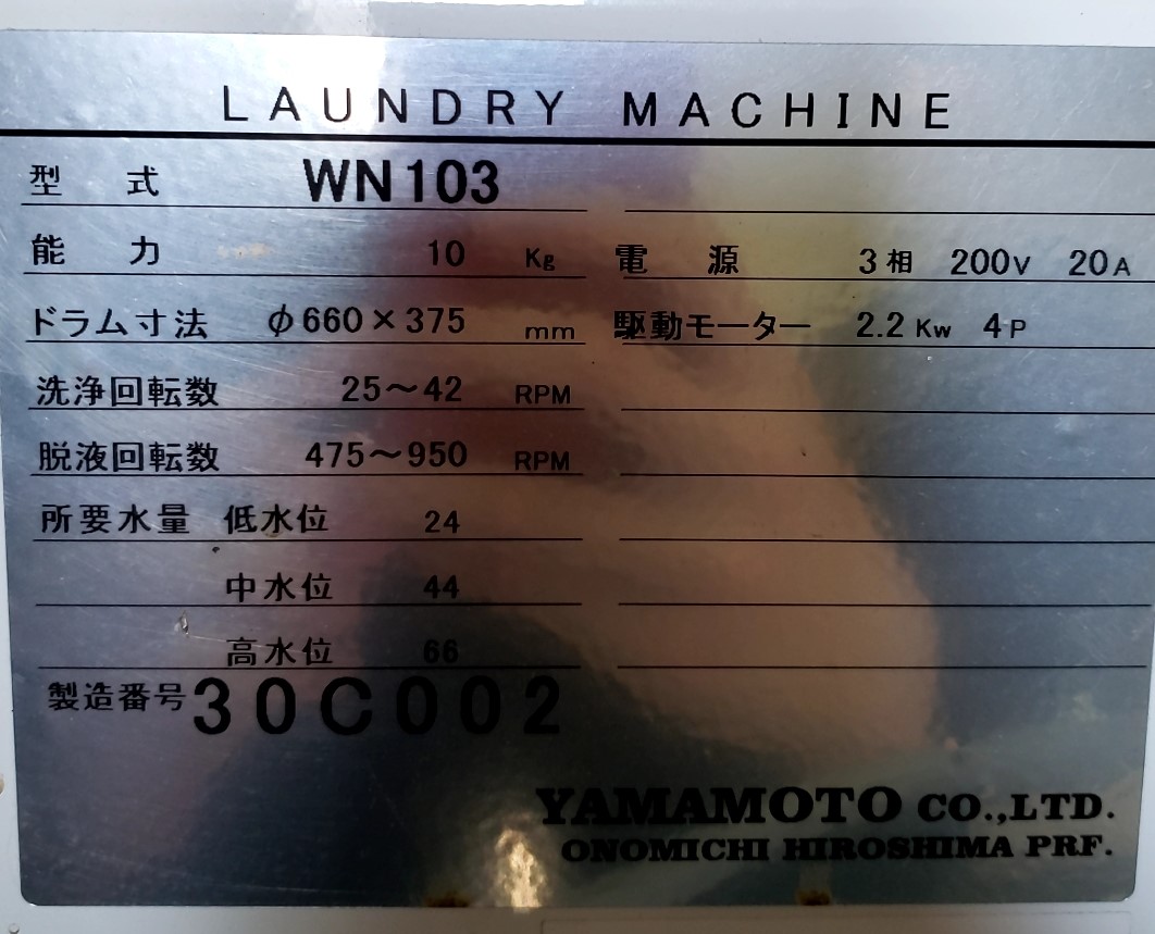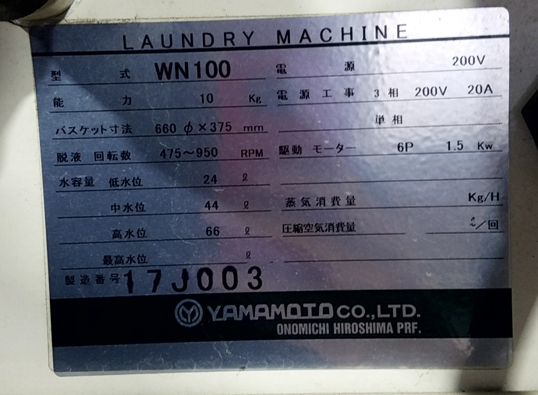 | 機種 | 山本製作所 水洗機(22kg) |